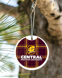 Action C Central Michigan University Tartan Round Holiday Ornament