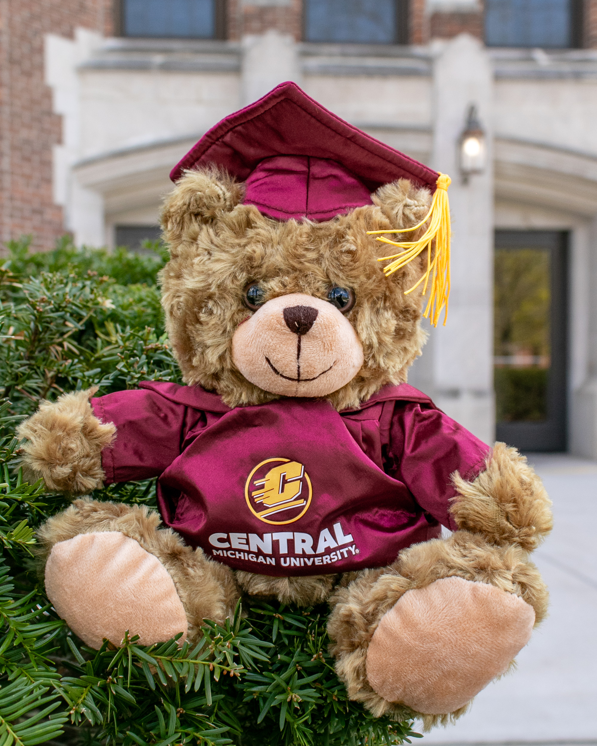 Central Michigan Bear with Maroon Cap and Gown